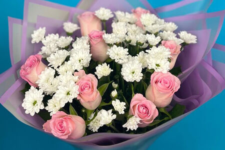 Очаровательный Букет с Розами и Хризантемой доставка