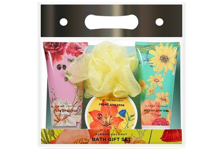 Женский подарочный набор ( лосьон для тела 100мл + гель для душа 100мл + скраб для тела 50мл + мочалка для тела ) доставка