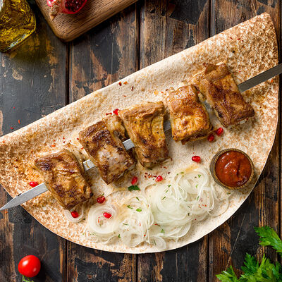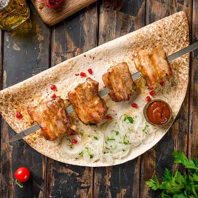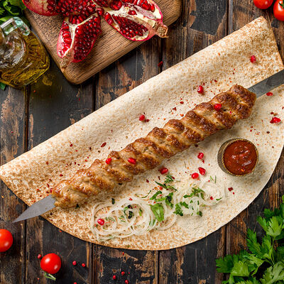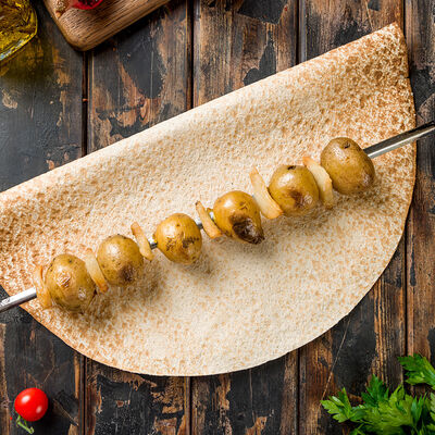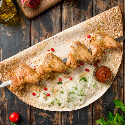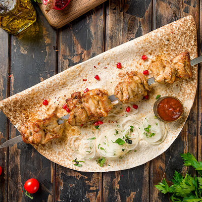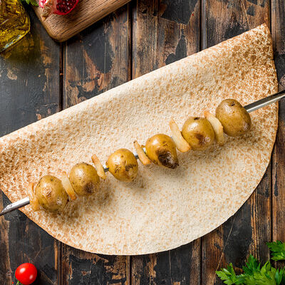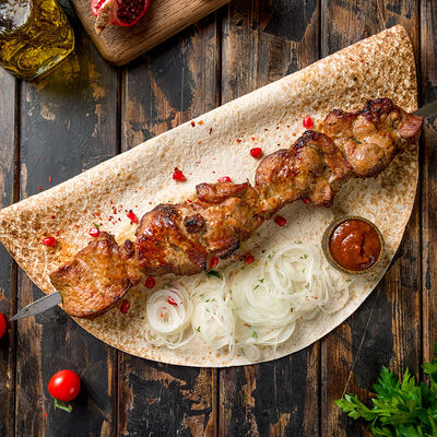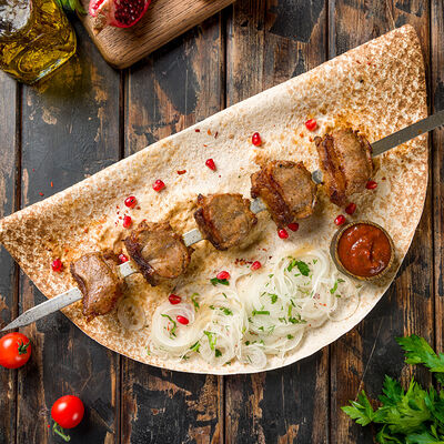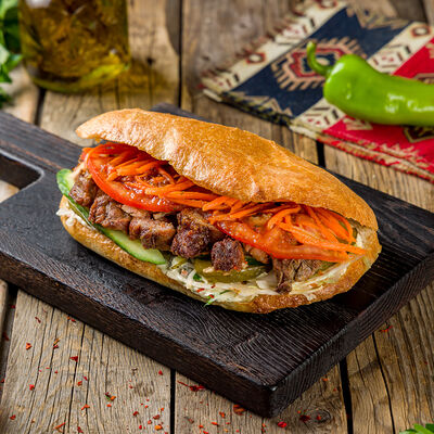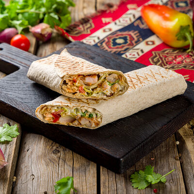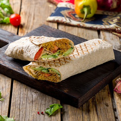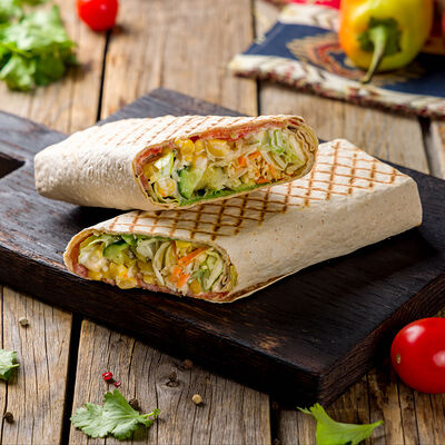 Лаваш тандырный, капуста, морковь, салат айсберг, помидоры, огурцы, кукуруза, чесночный соус