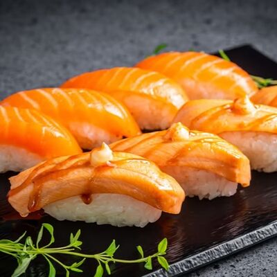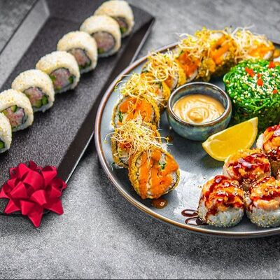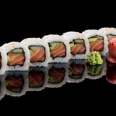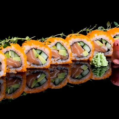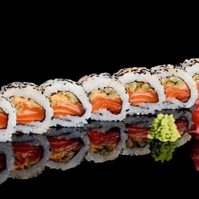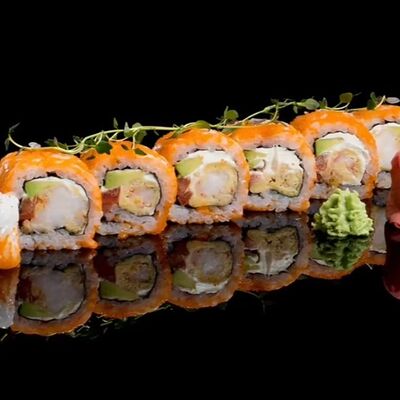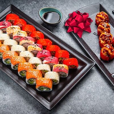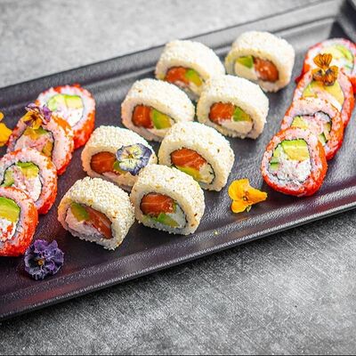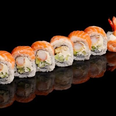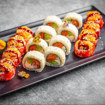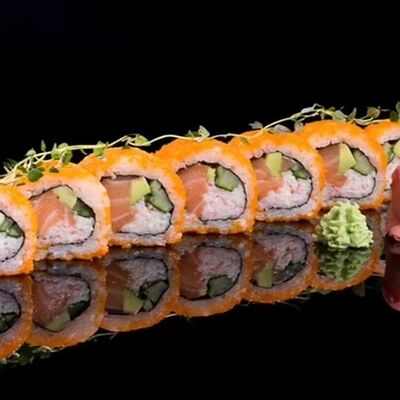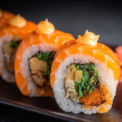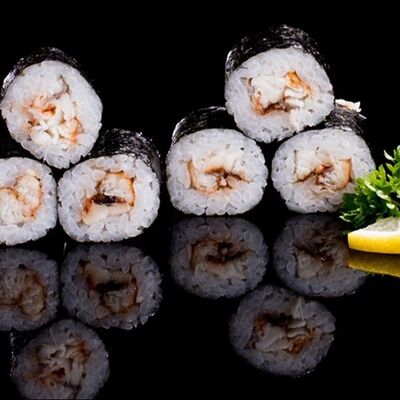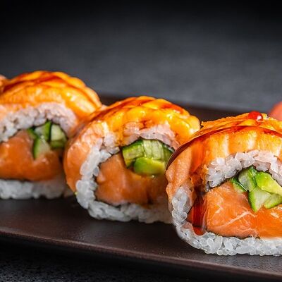 Лосось, угорь, соус унаги, японский омлет, соус манго-чили (8 шт.)