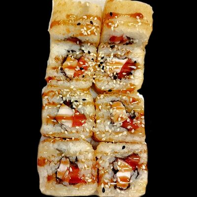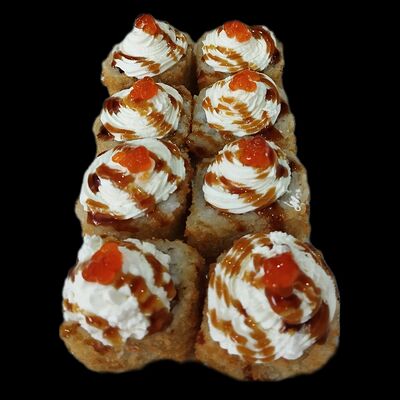 Рис, нори, сыр твор., лосось, кляр, панировка панка