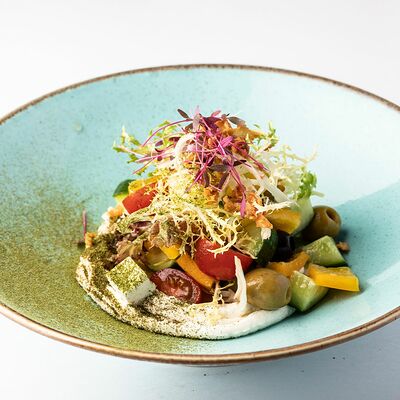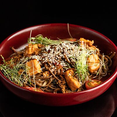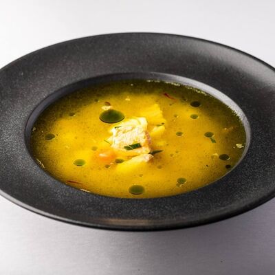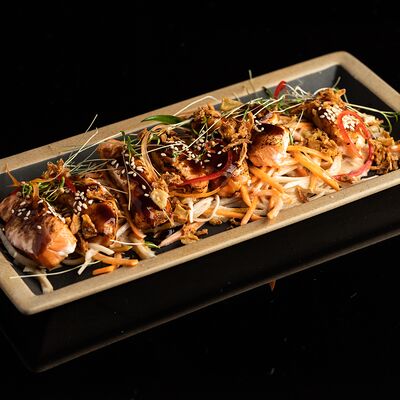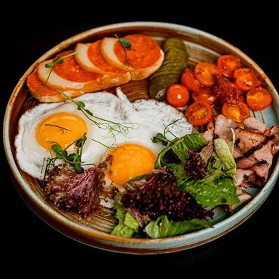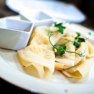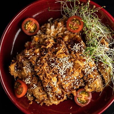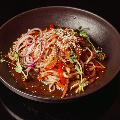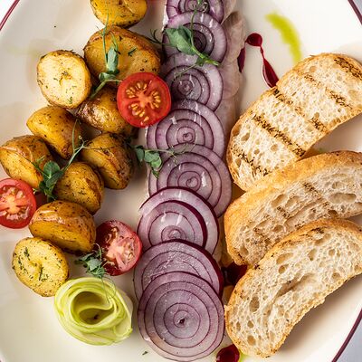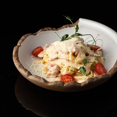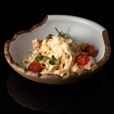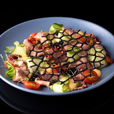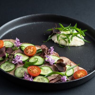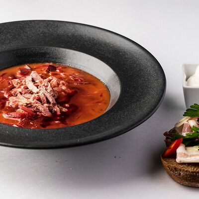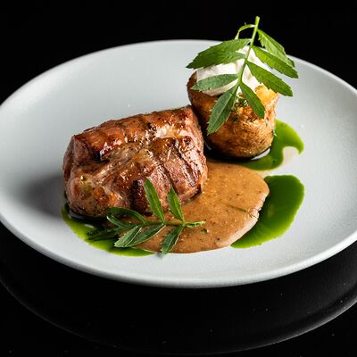 Томленый язык с ризотто из перловки и соусом демиглас доставка