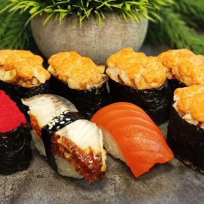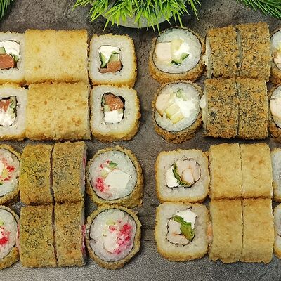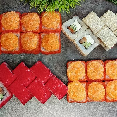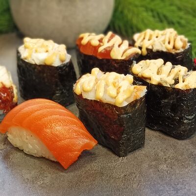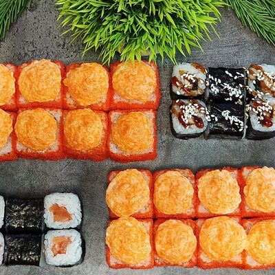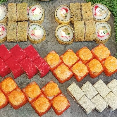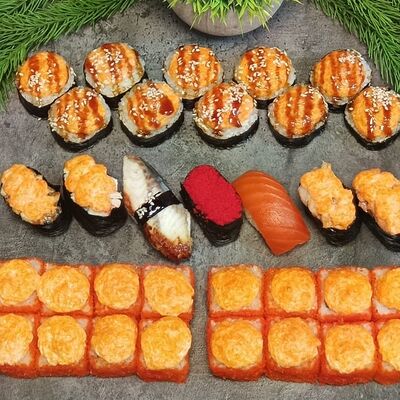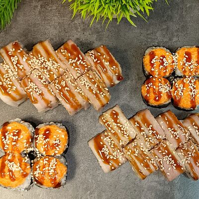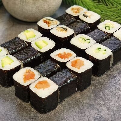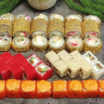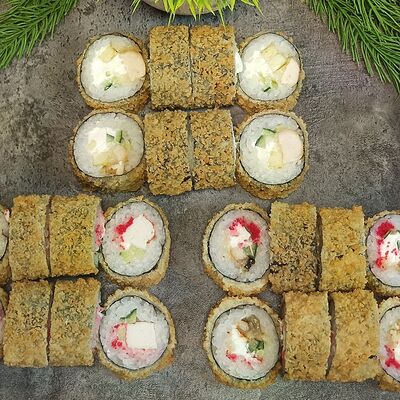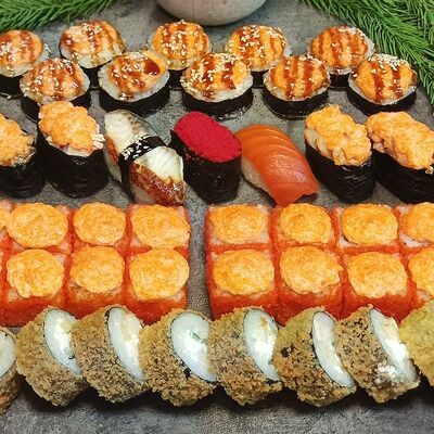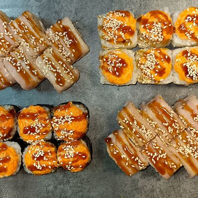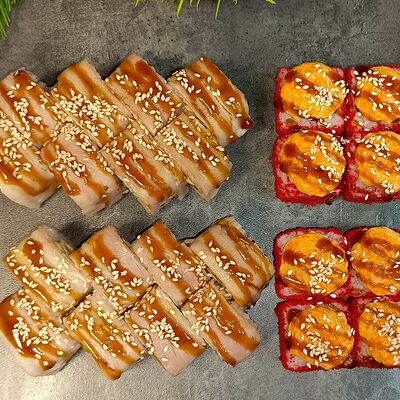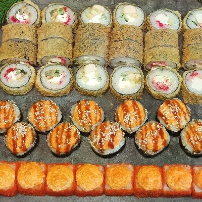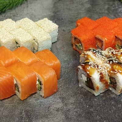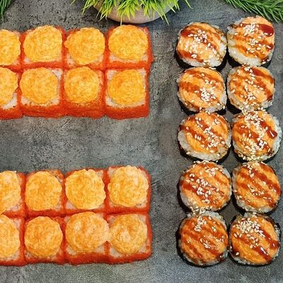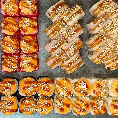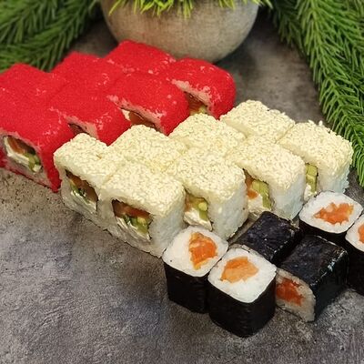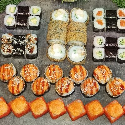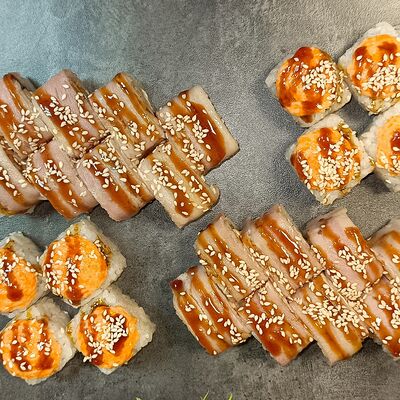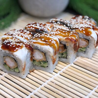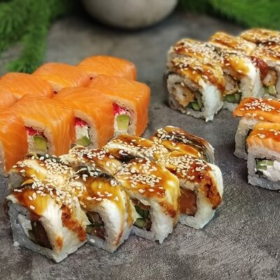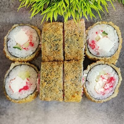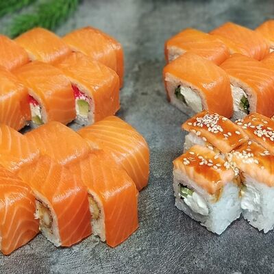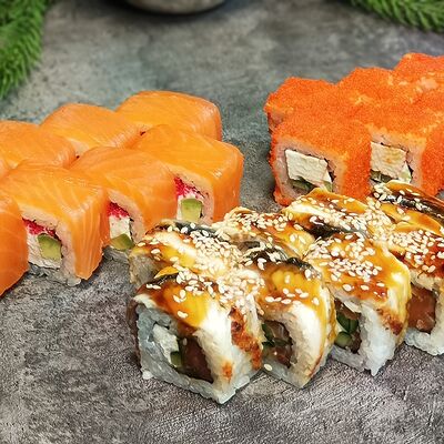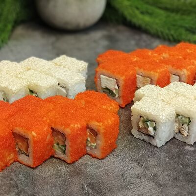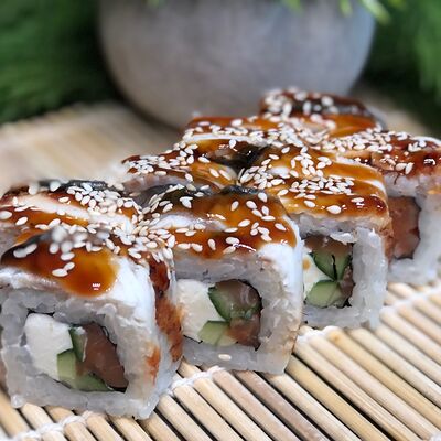 Нори, сыр, огурец, лосось, унаги, кунжут