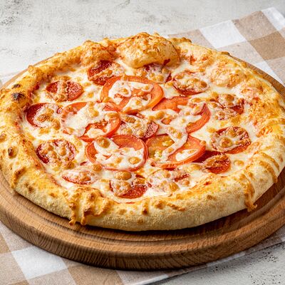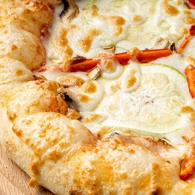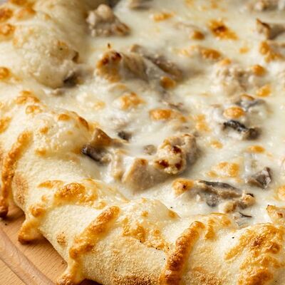 Тесто для пиццы, сыр моцарелла, сыр голландский, сыр горгонзола, сыр рикотта, сыр брынза, сливки кондитерские (32 см)