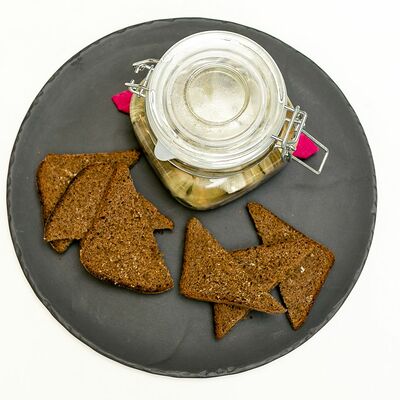 С зеленым луком, горчицей и чесночными гренками