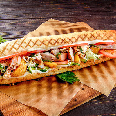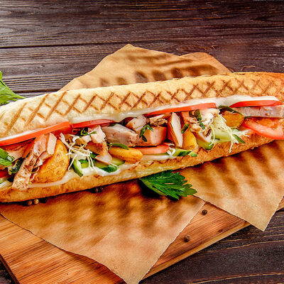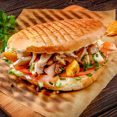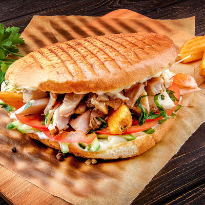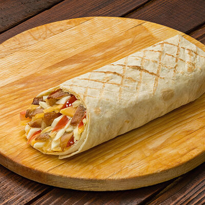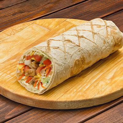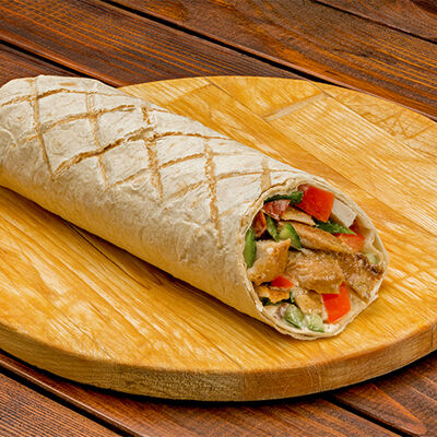 Лаваш, мясо куриное, помидоры, чесночный соус, сыр тертый