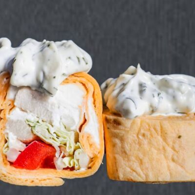 Куриная грудка, томат, чеддер, капуста пекинская, чесночный, тортилья пшеничная
