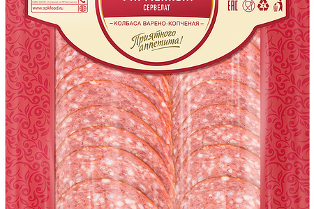 Колбаса копчено-вареная СПК Сервелат Фирменный, нарезка доставка