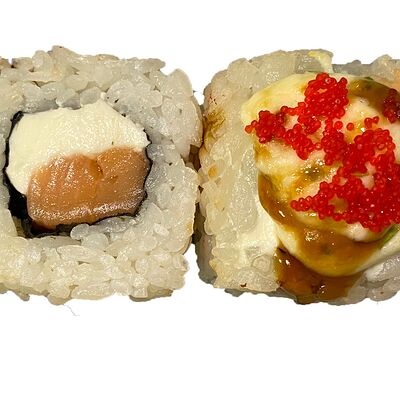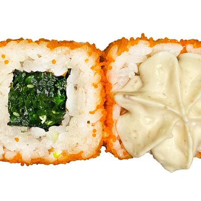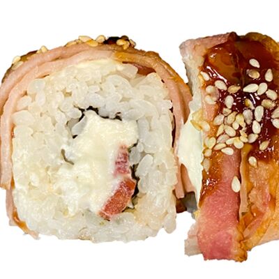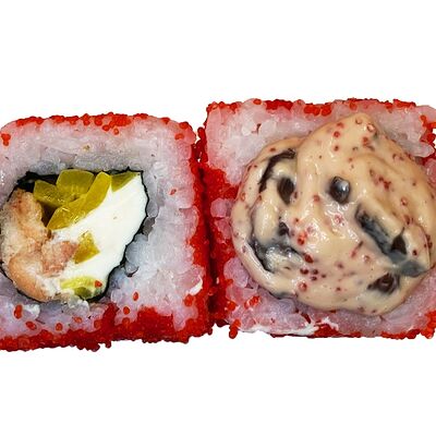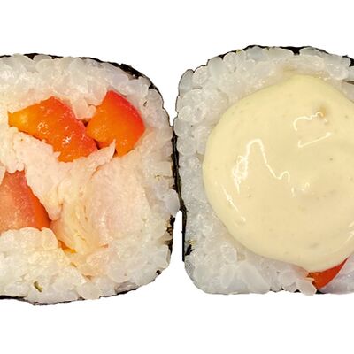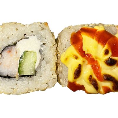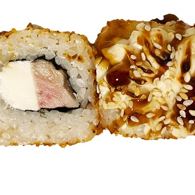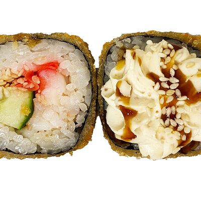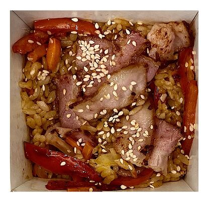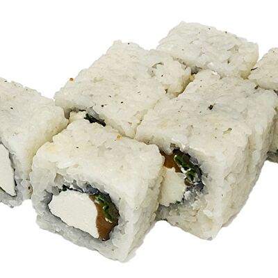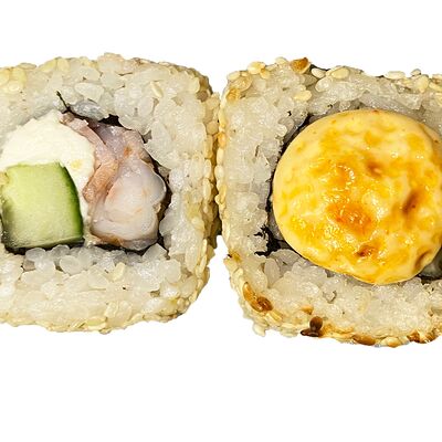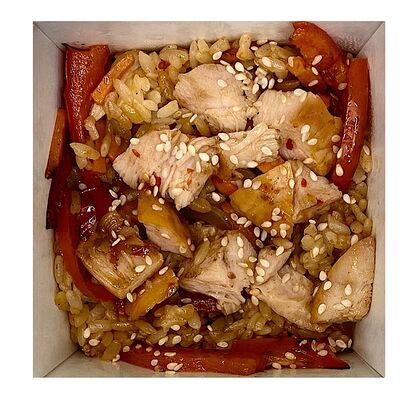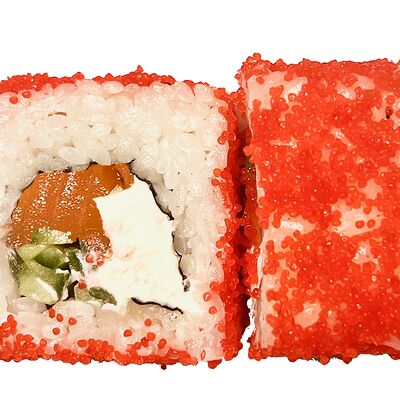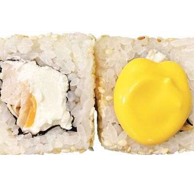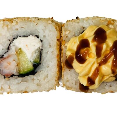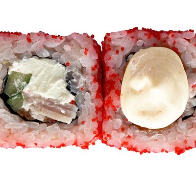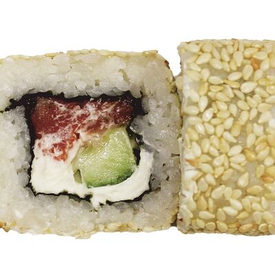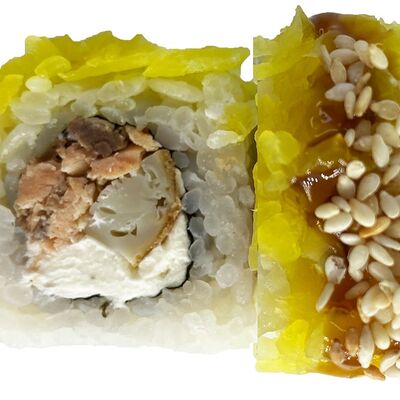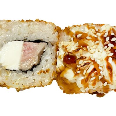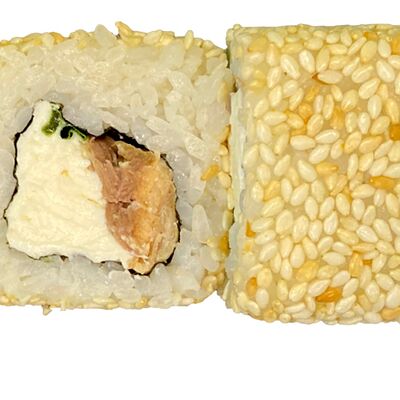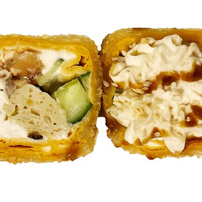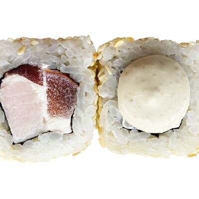 Варёно-копчёная курица, помидор, сыр, белый кунжут и соус цезарь