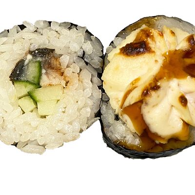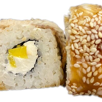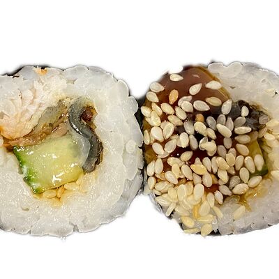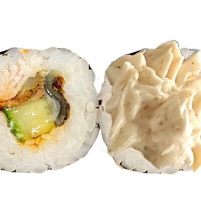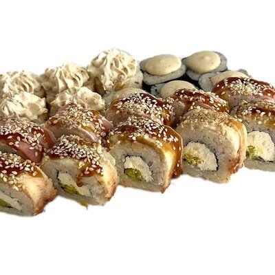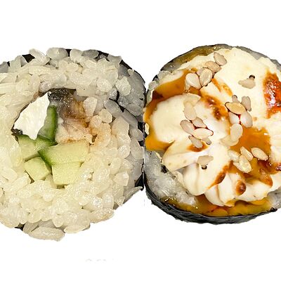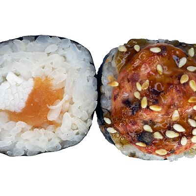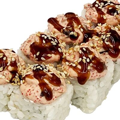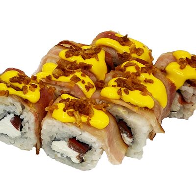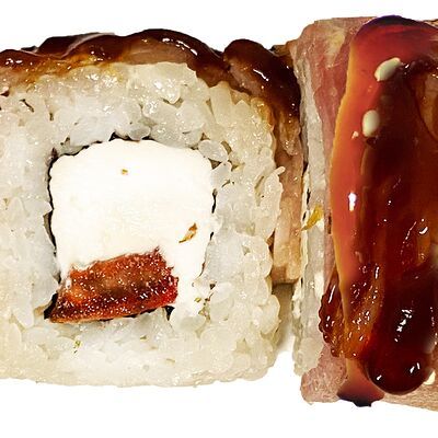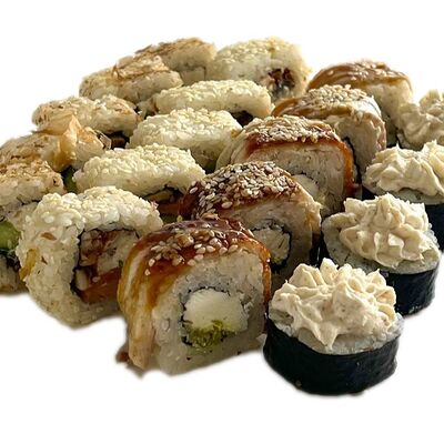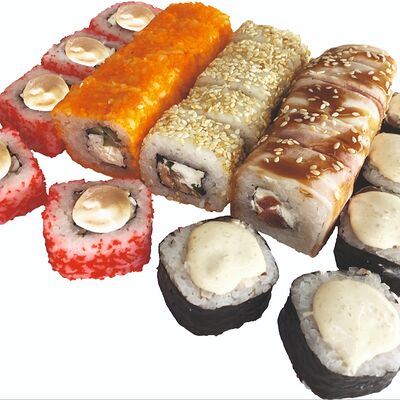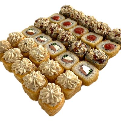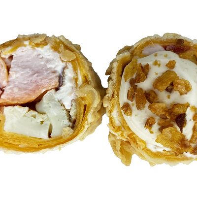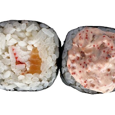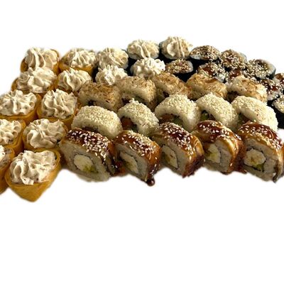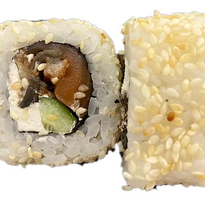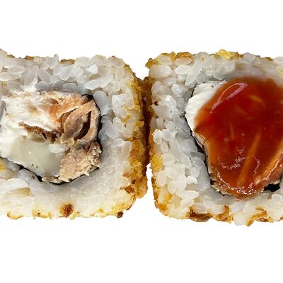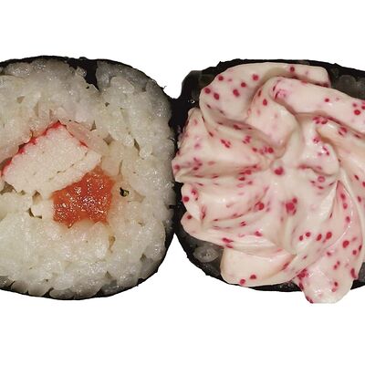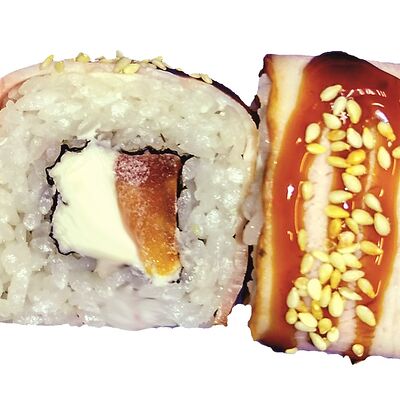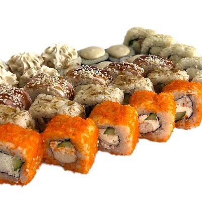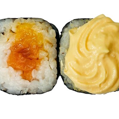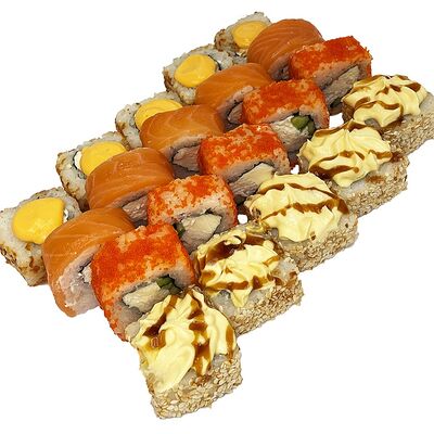 Варёно-копчёная курица, помидор, сыр, белый кунжут и соус цезарь
