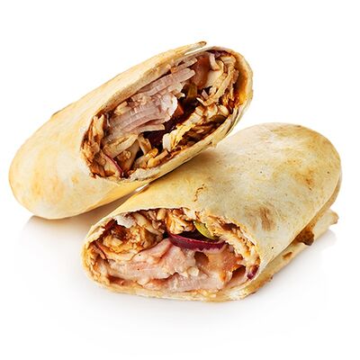 Сочный цыплёнок, моцарелла, спелые томаты, соус ранч, пшеничная лепёшка