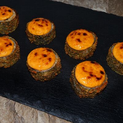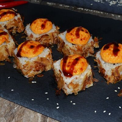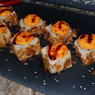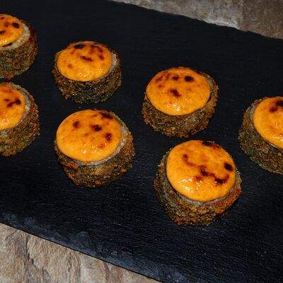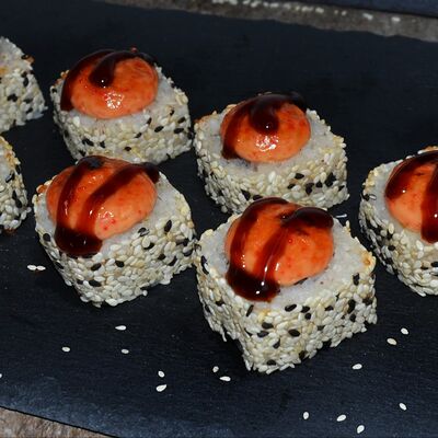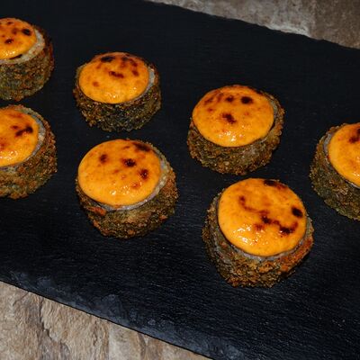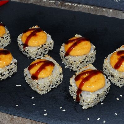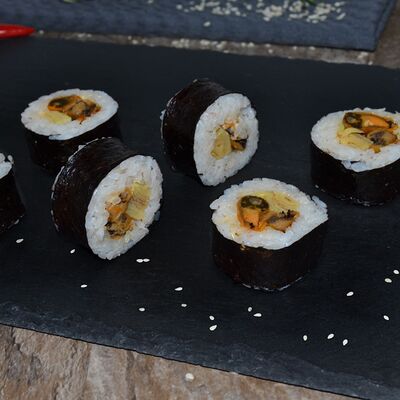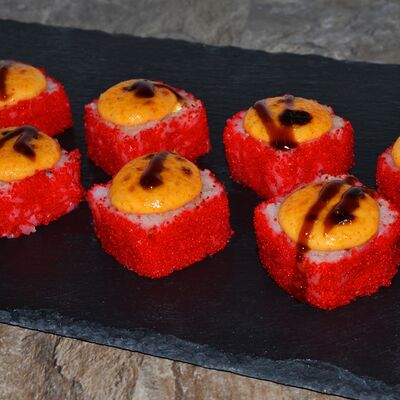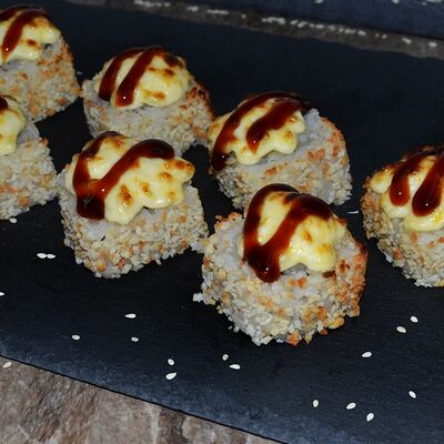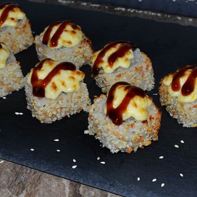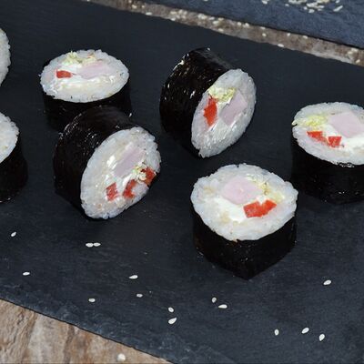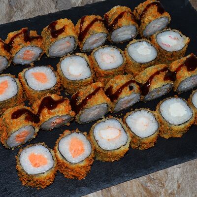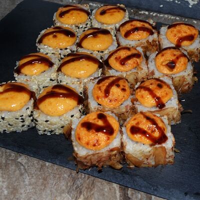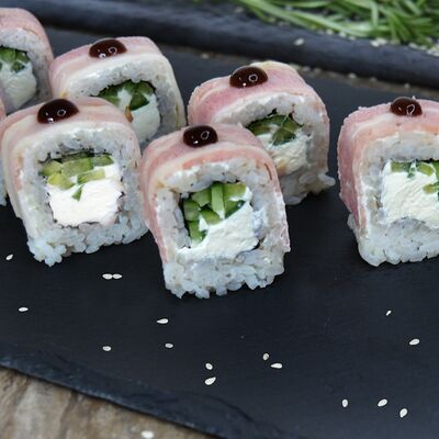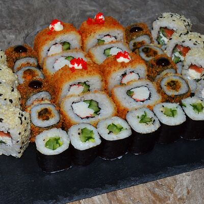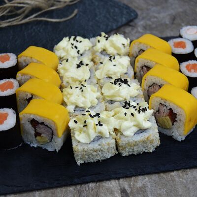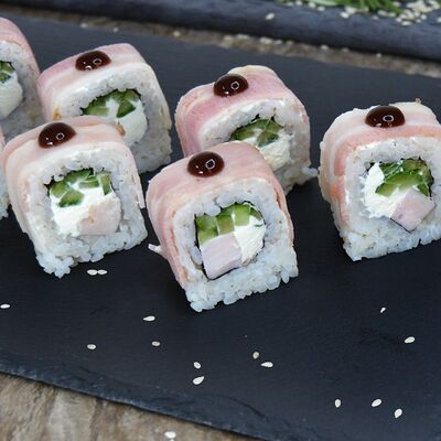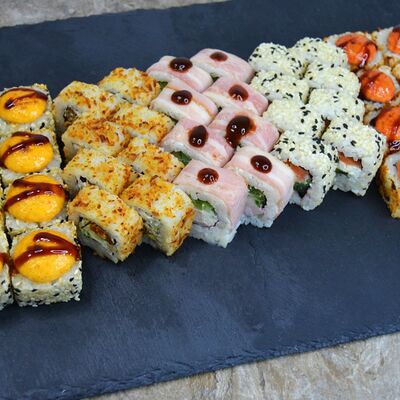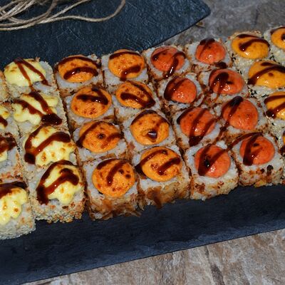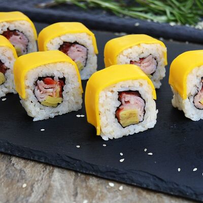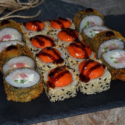 Томатный соус, курица, шампиньоны, перец сладкий, огурцы маринованные, лук красный, моцарелла, орегано, соус цезарь