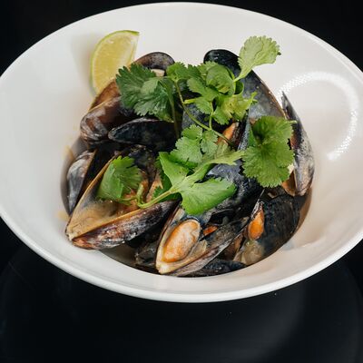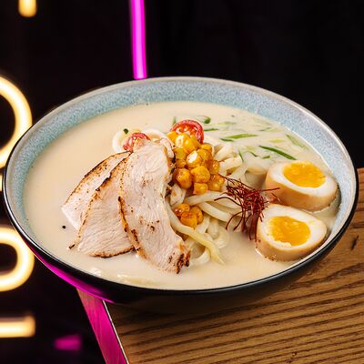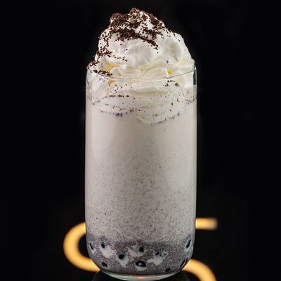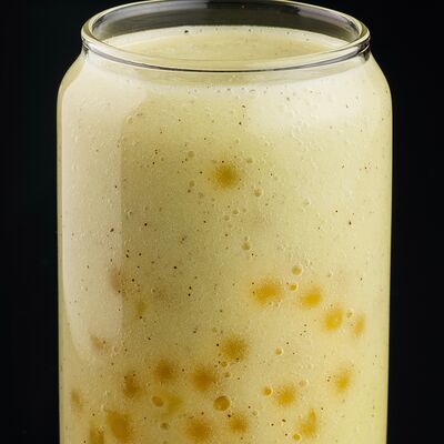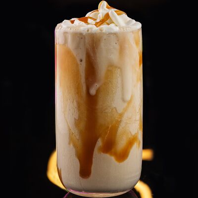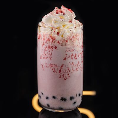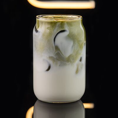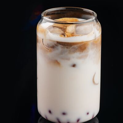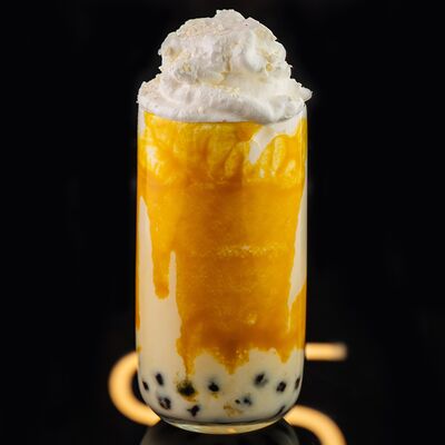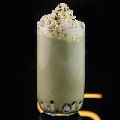 Молоко, чай матча, карамельный сироп, сливочная пенка, тапиока