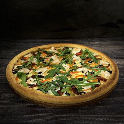 Вяленые томаты, киноа, салат, руккола, красный лук, сыр фета, маслины, томаты, авокадо, масло оливковое