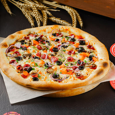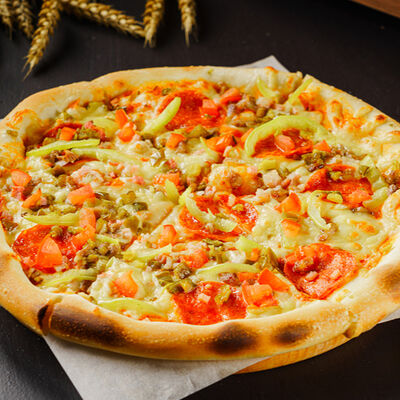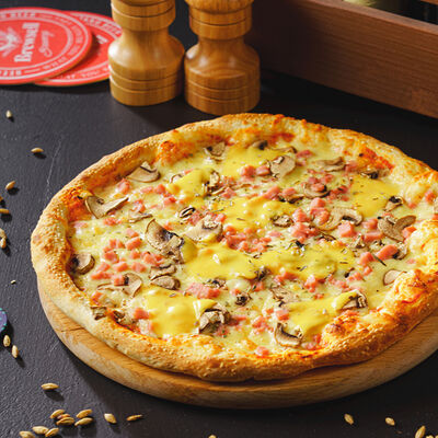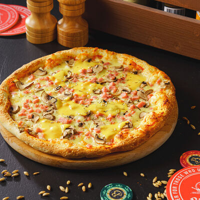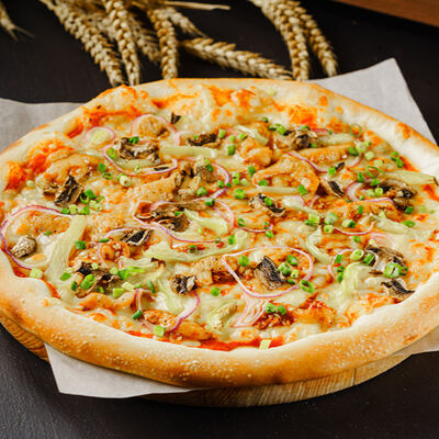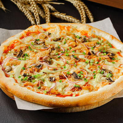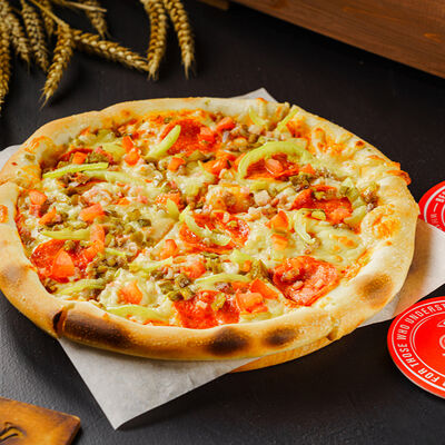 Сыр дорблю, пармезан, моцарелла, чеддер, орегано, сырный соус (25 см)