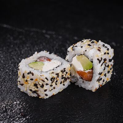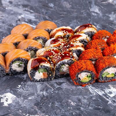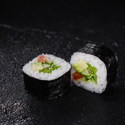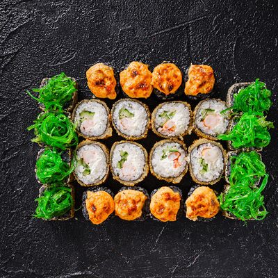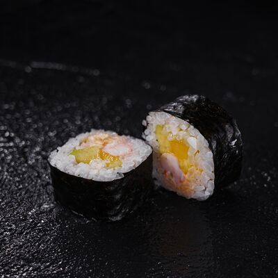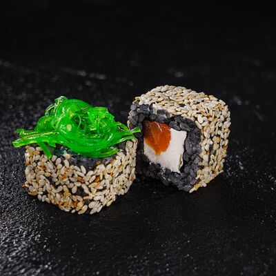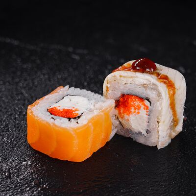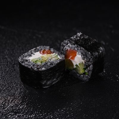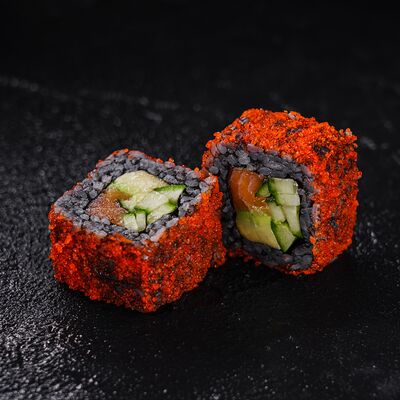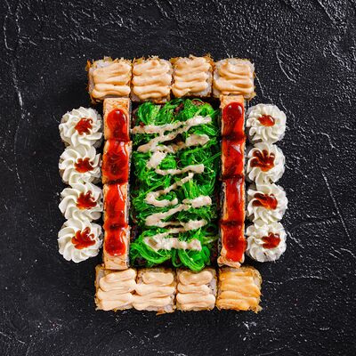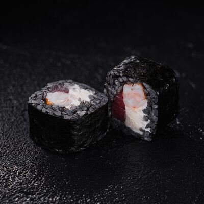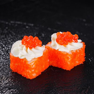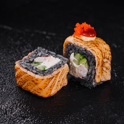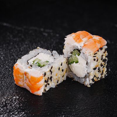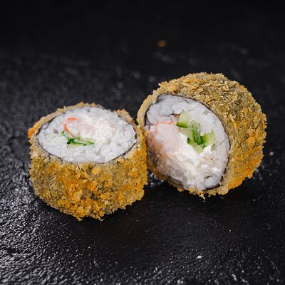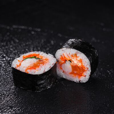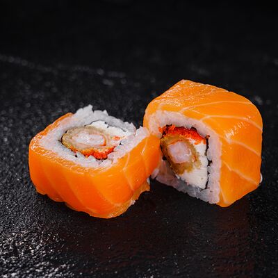 Лосось, сливочный сыр, икра масаго, креветки в темпуре