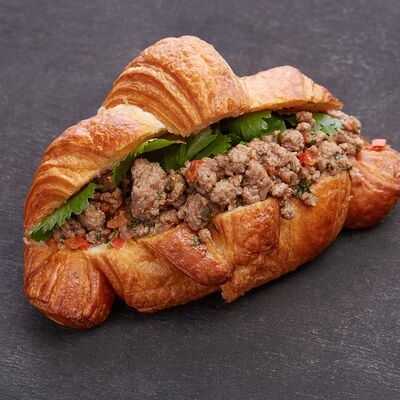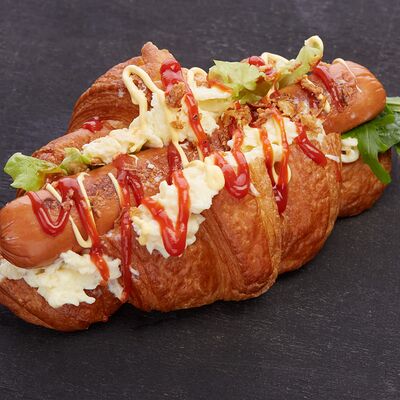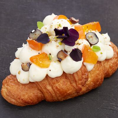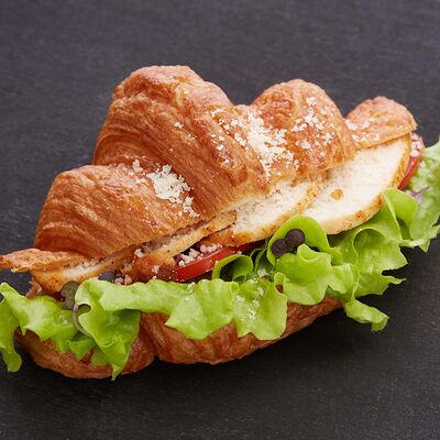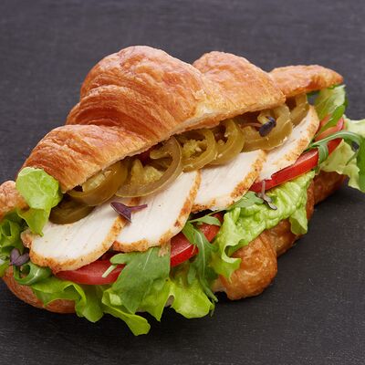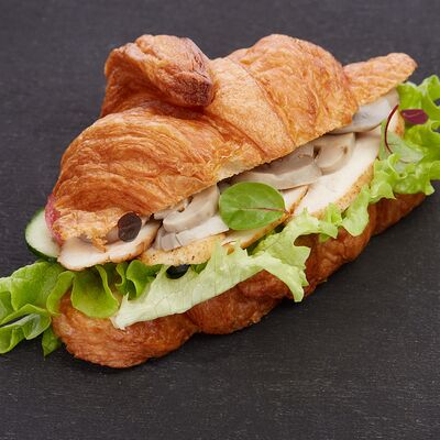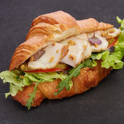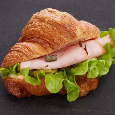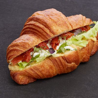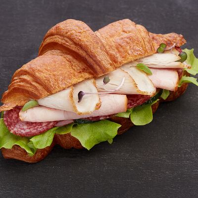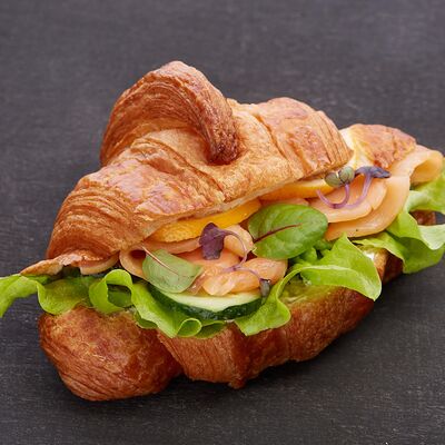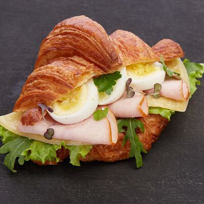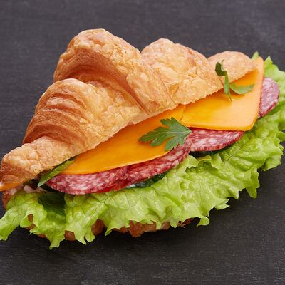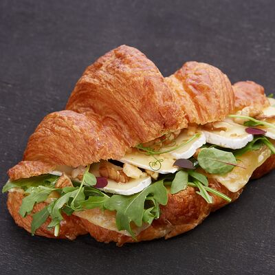 Круассан, крем-сыр, маасдам, камамбер, руккола, мёд, орех грецкий