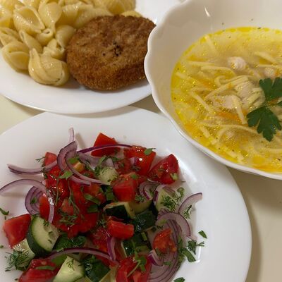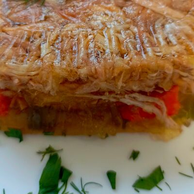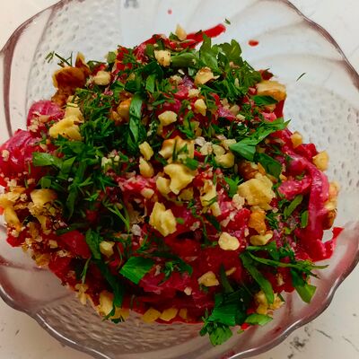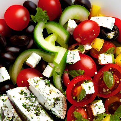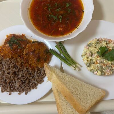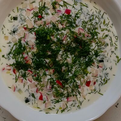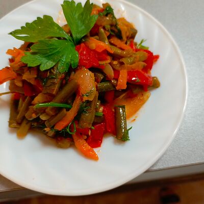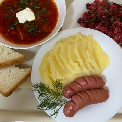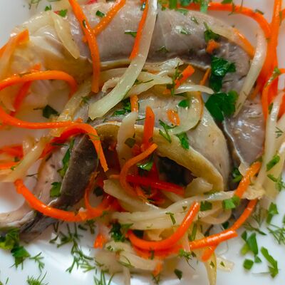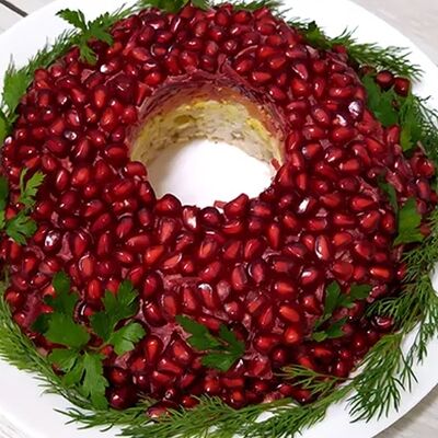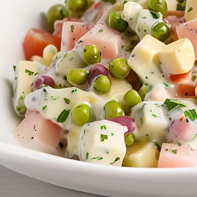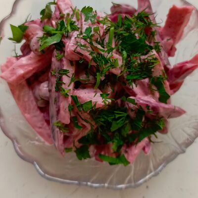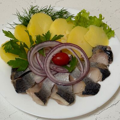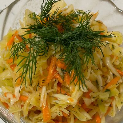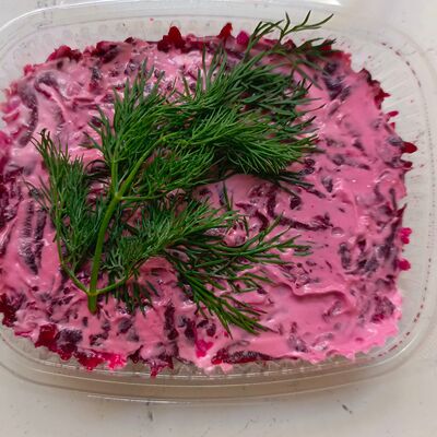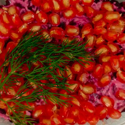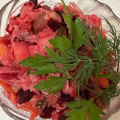 Капуста квашеная, огурец, свёкла, морковь, горошек, картофель, масло растительное, зелень