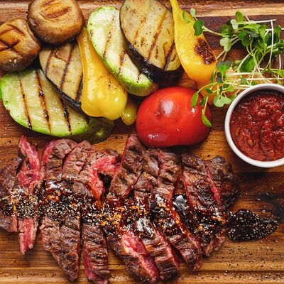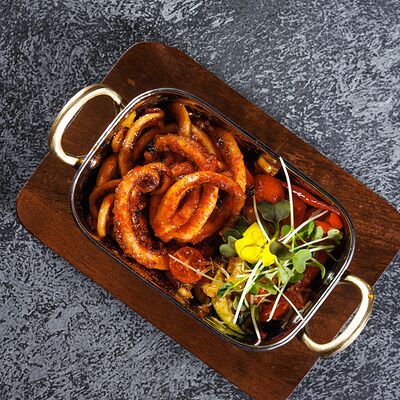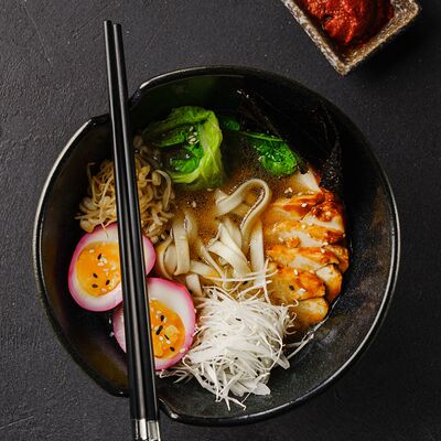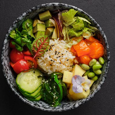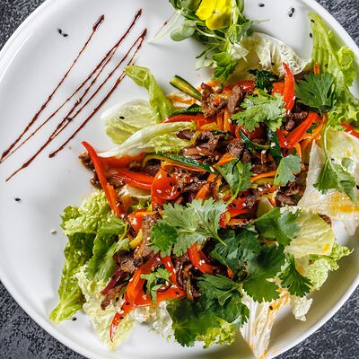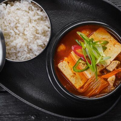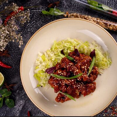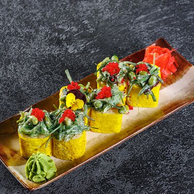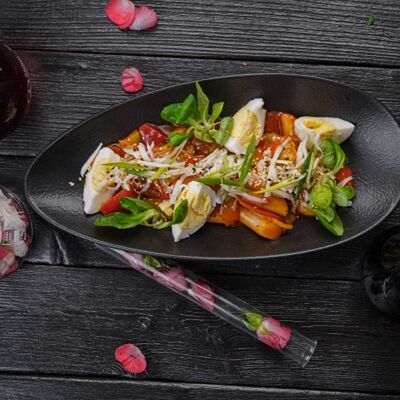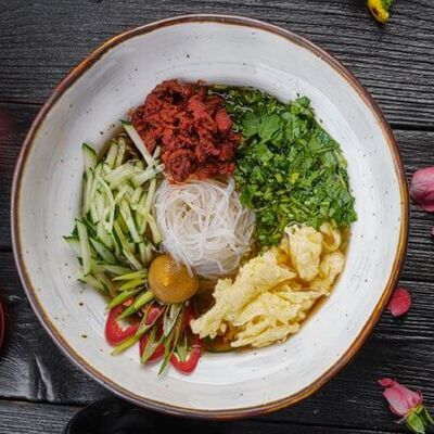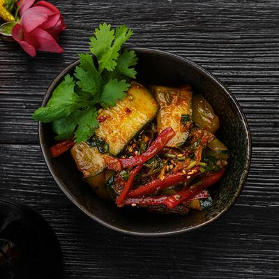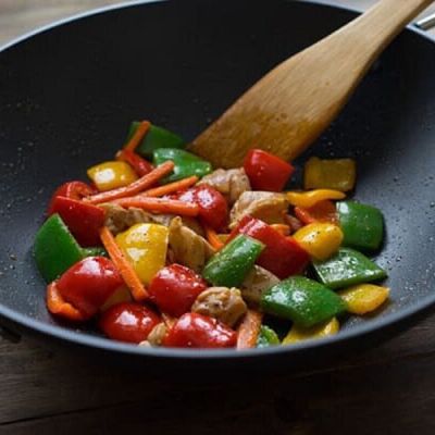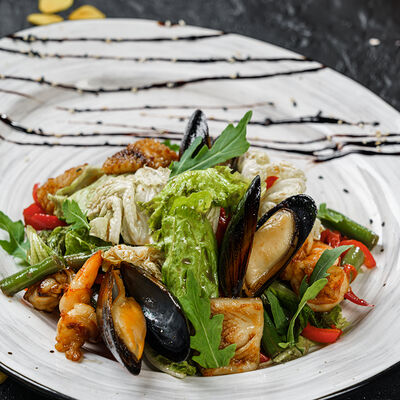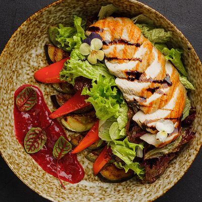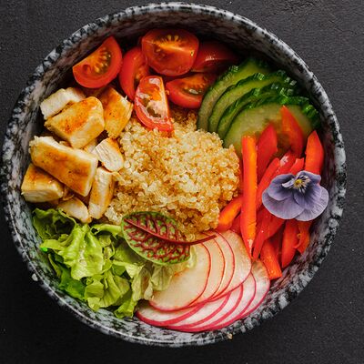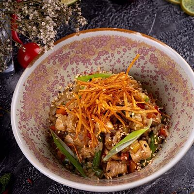 Рис, кабачок, болгарский перец, фасоль стручковая, шампиньоны, лук, морковь, куриное филе