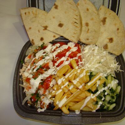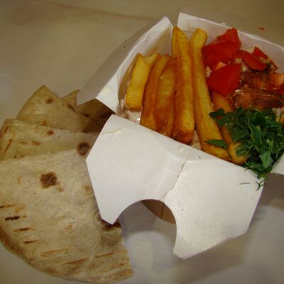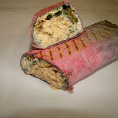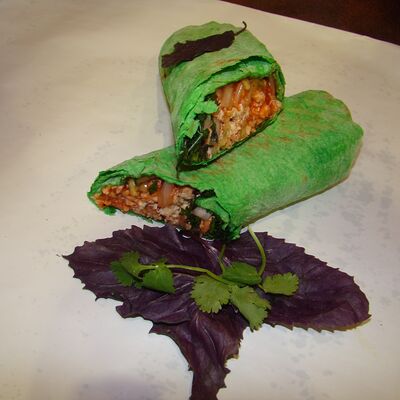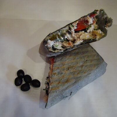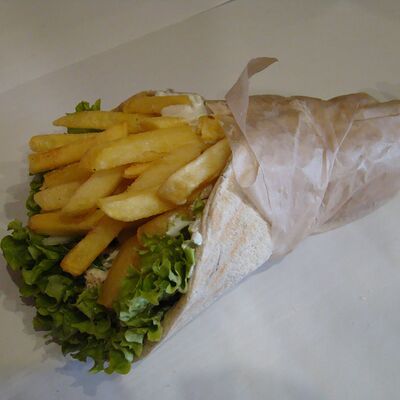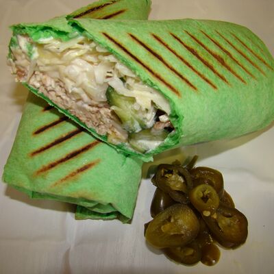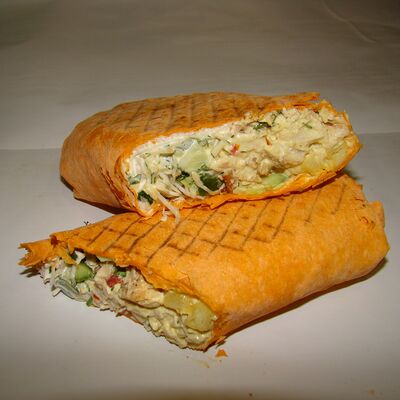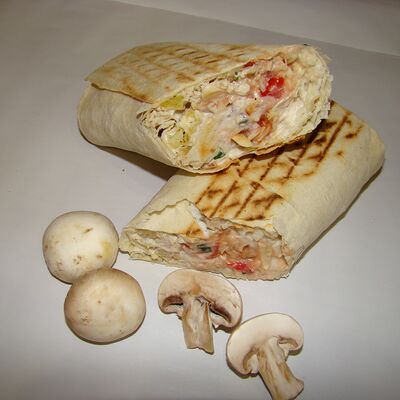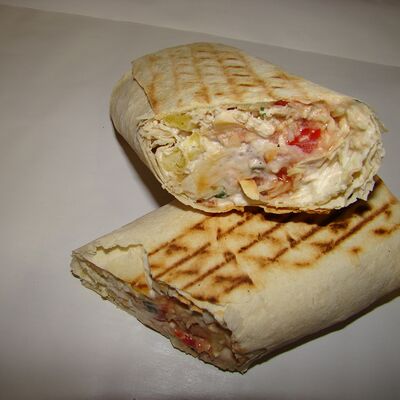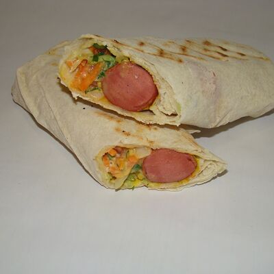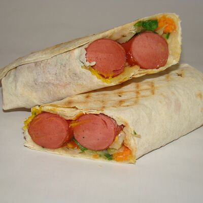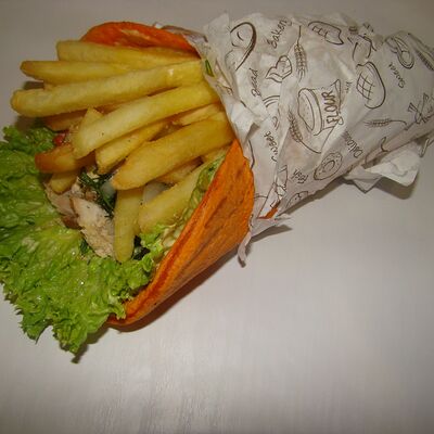 Лаваш, курица, помидор, огурец, капуста, зелень, лук, соус белый, соус красный