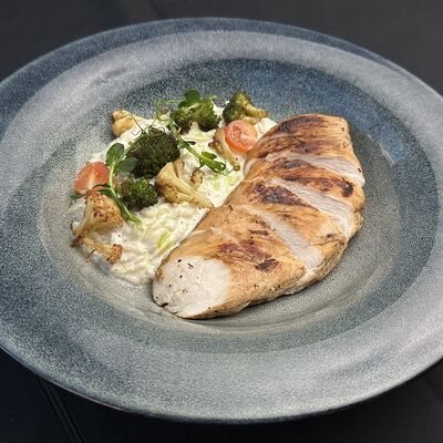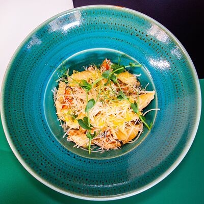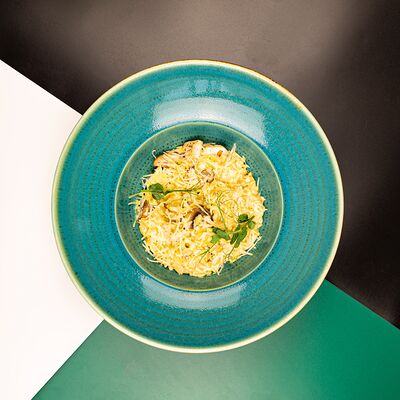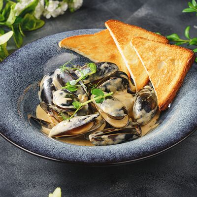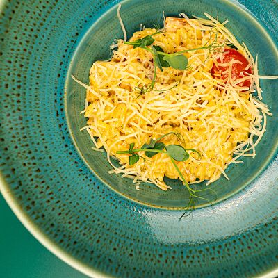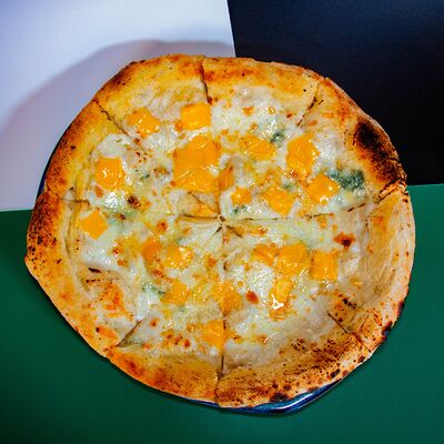 Тесто, соус сливочный, моцарелла, сыр дорблю, пармезан, чеддер (30 см)