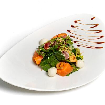 Сыр моцарелла, лосось, креветки (33 см)