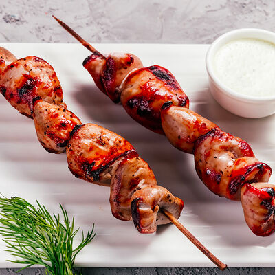 3 пистолета (*баранина*), 200 гр баранины мякоть, 4 люля-кебаба из курицы, 200 гр картофеля на мангале, 4 гриба (*любых, по вкусу*), 2 помидора, 1 болгарский перец, соус белый и соус красный (по необходимости)