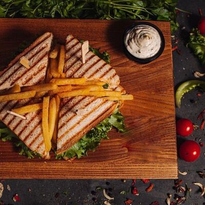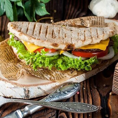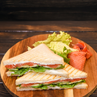 Хлеб Харрис, Лосось, сыр Hochland, огурцы, помидоры