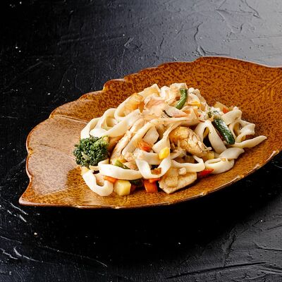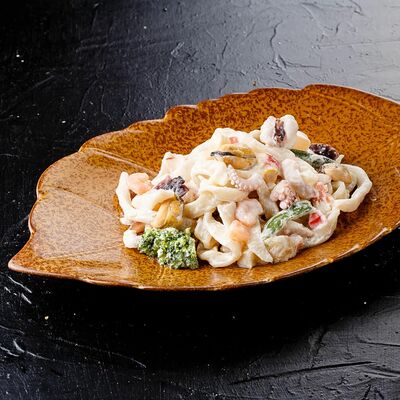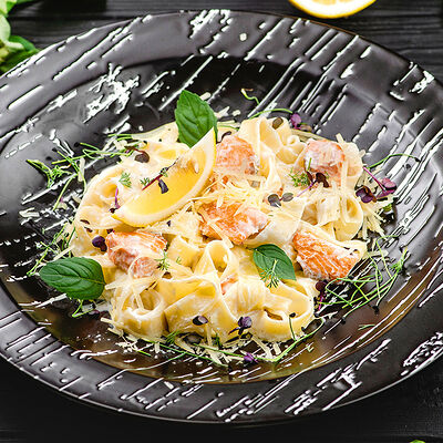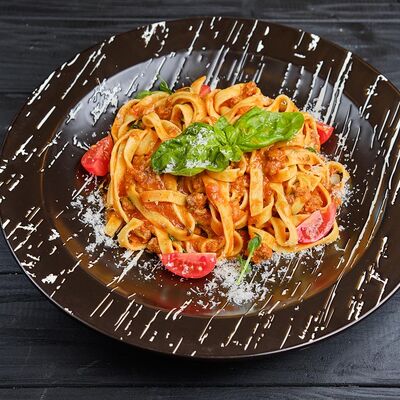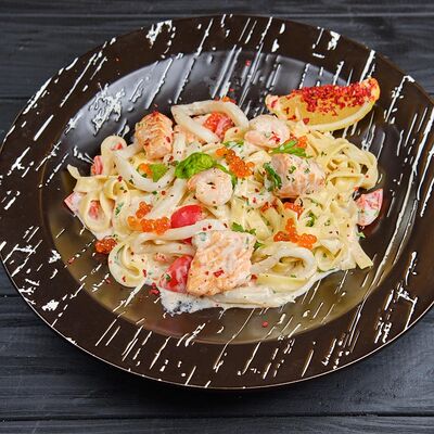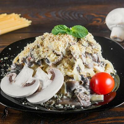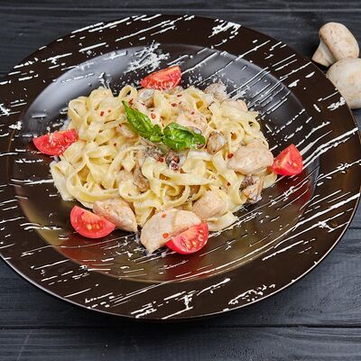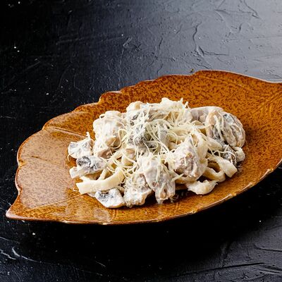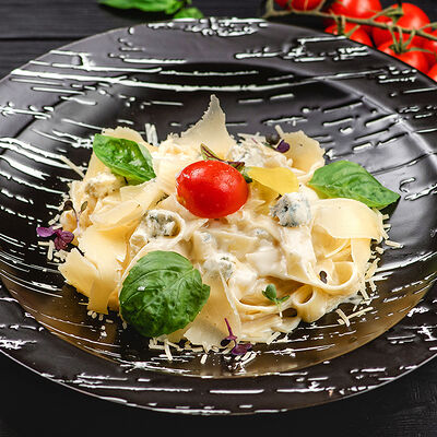 Паста в сливочном соусе, сыр дорблю, российский, моцарелла, пармезан, томат черри