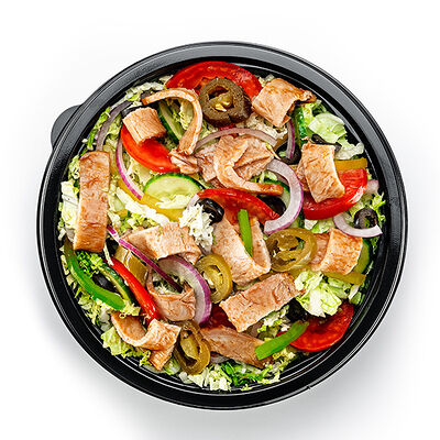 Куриное филе в сочетании с двумя полосками бекона с сыром и свежими овощами на пшеничной лепешке и соусом на выбор. Рекомендуется горячим
