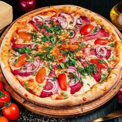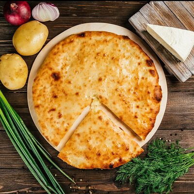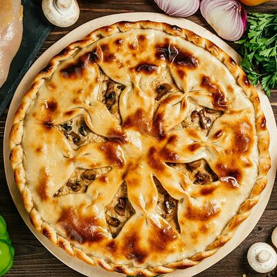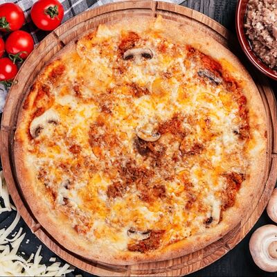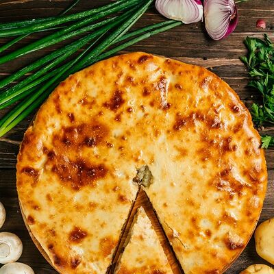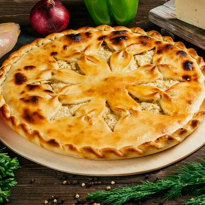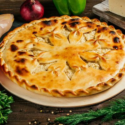 Сыр моцарелла, сыр брынза, яйцо куриное, дрожжевое тесто, соль, сахар, сливочное масло (28 см)