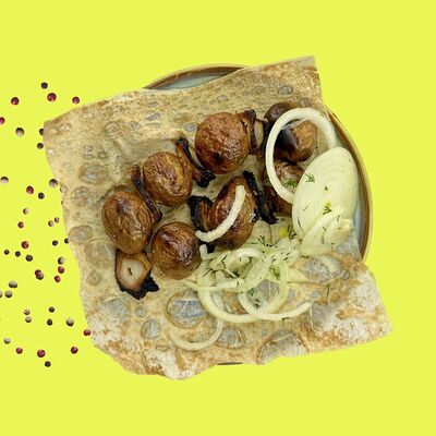 8 кусочков пышного лаваша, 6 кусочков тонеого