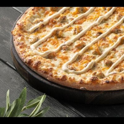 Белый соус, маринованная курица, 3 вида сыра, помидор, специи (30 см)