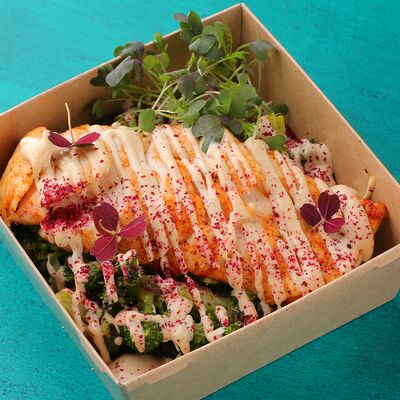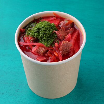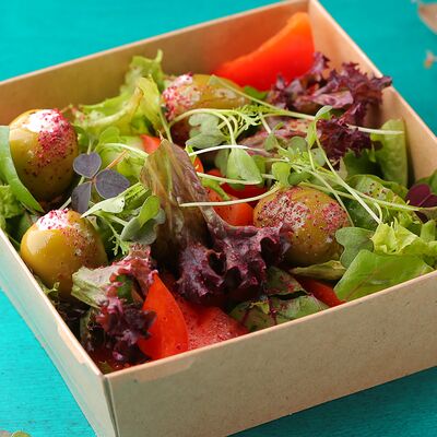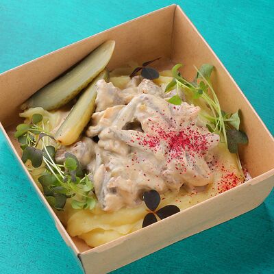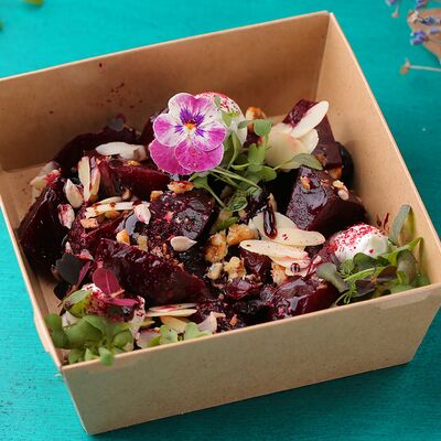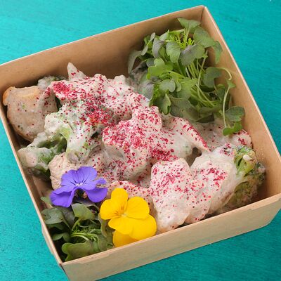 Молодой картофель, капуста, свекольная заправка, говяжья вырезка