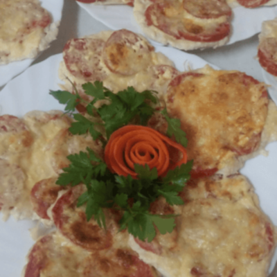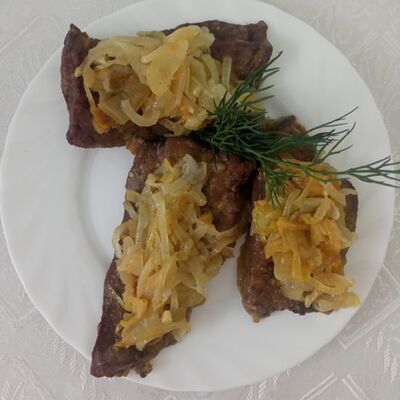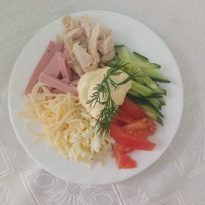 Мясные деликатесы, соленые огурцы, лук, маслины (карбонад cвинoй, колбаса полукопчёная, язык говяжий)