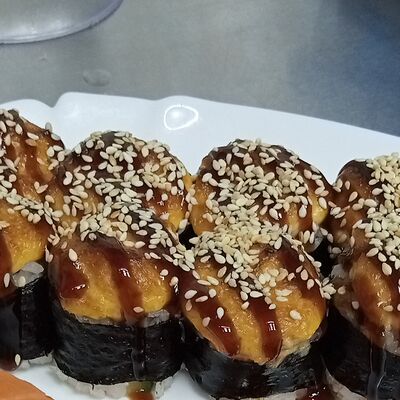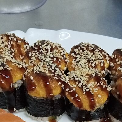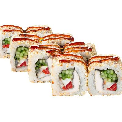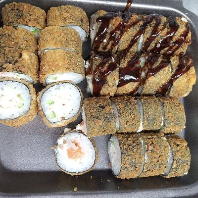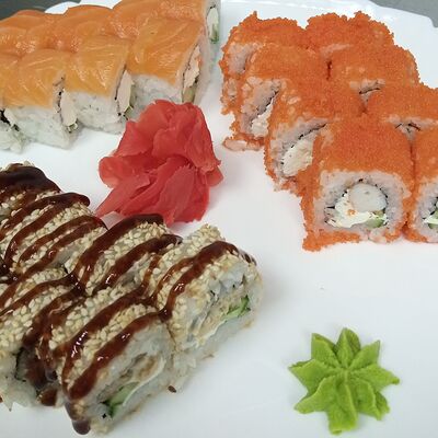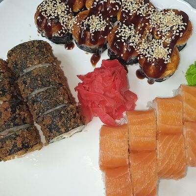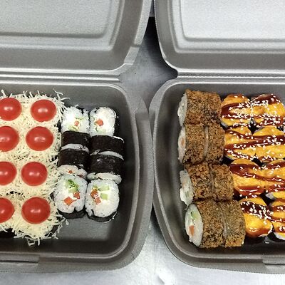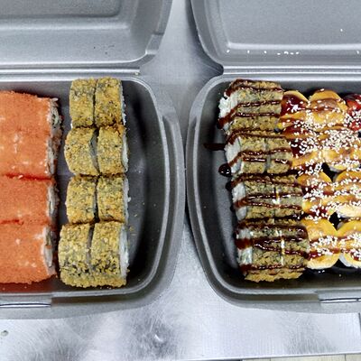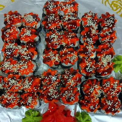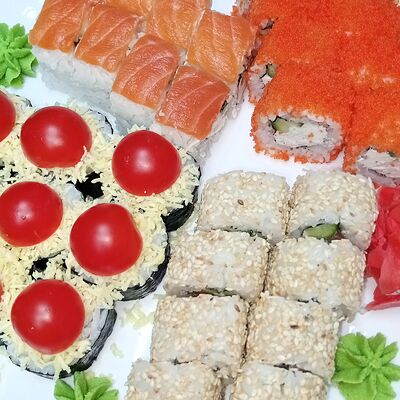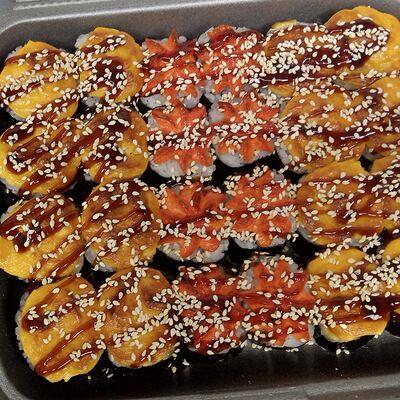 Филадельфия, ролл с крабом запечённый, цезарь с курицей, маки с угрём, ясай маки, филадельфия хот (46 шт.)