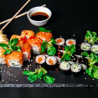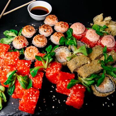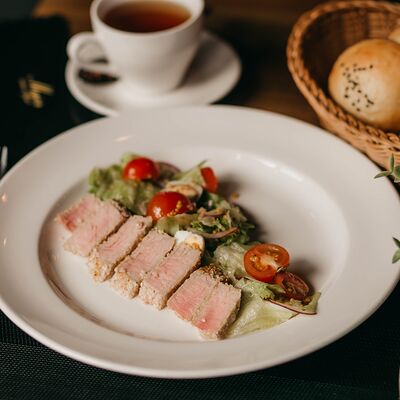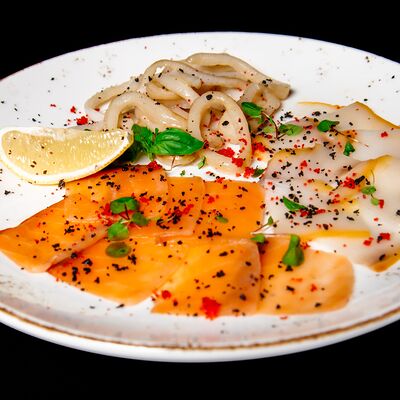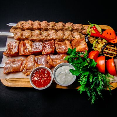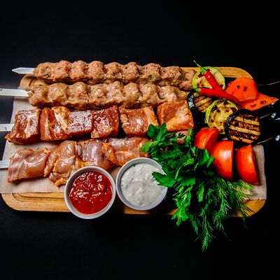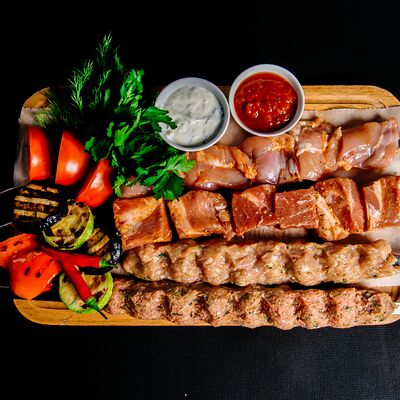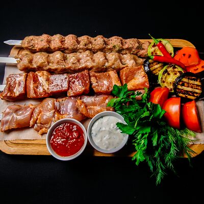 Ростбиф, казылык, буженина, сало, горчица, соус хрен