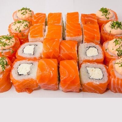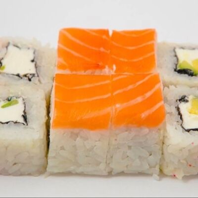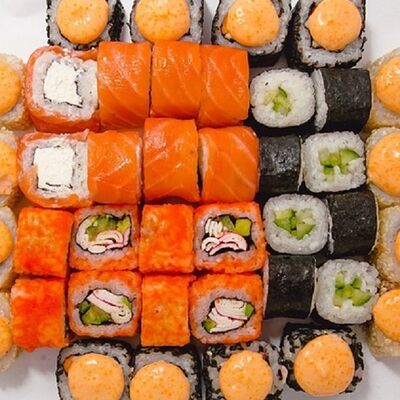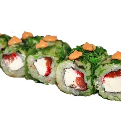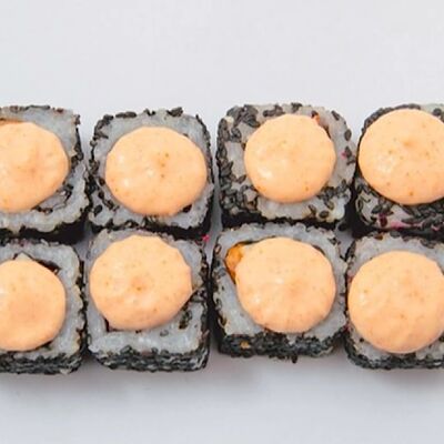 Рис, нори, сыр сливочный, лосось, креветка, спайси соус