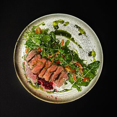 Микс-салат, черри, свежий огурец, цитрусовая заправка