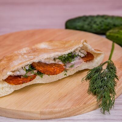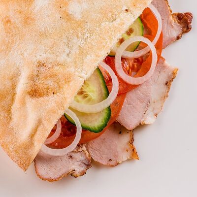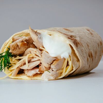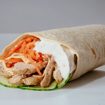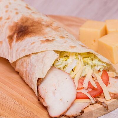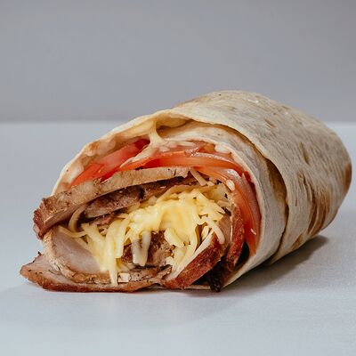 Мясо или фаляфель на выбор, помидор, чеддер, гауда, хрустящая сырная корочка и сырный соус. Оригинальная шаверма для любителей сыра