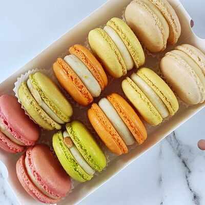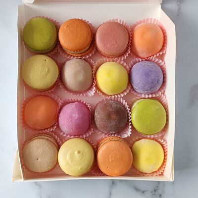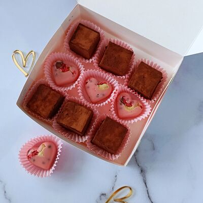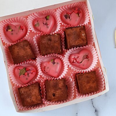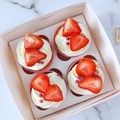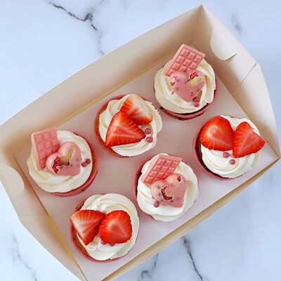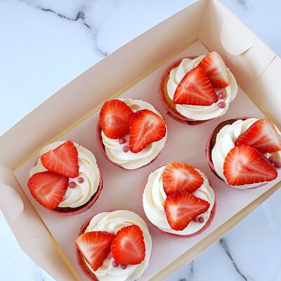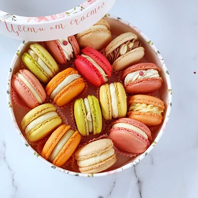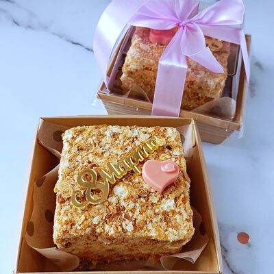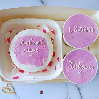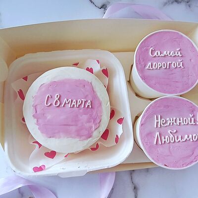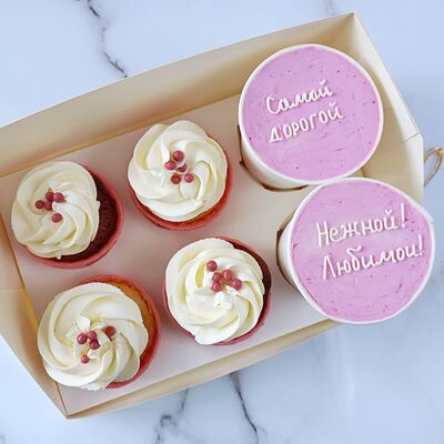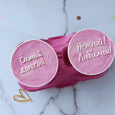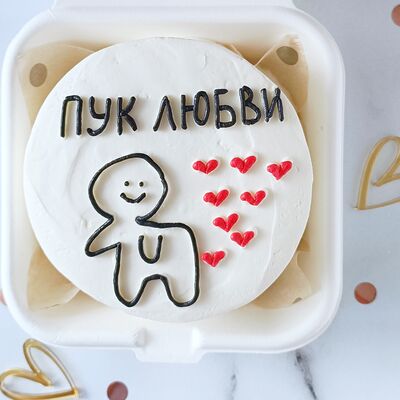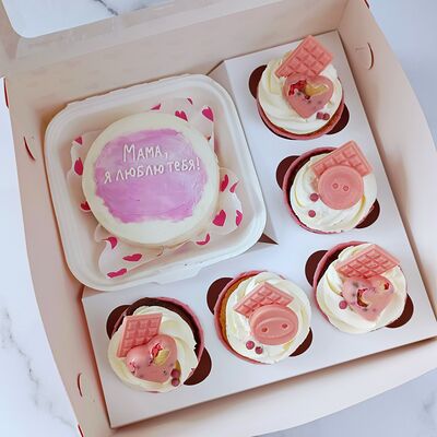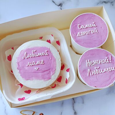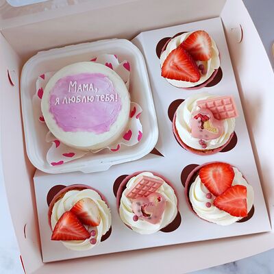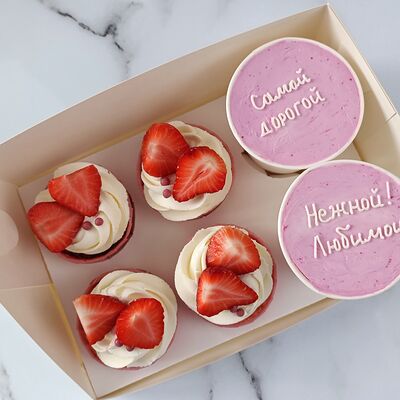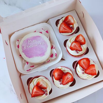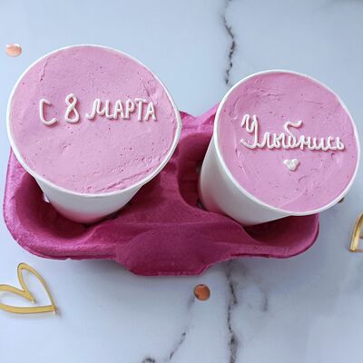Ванильный бисквит: Мука, сахар, яйца, молоко цельное, сливочное масло 82,5 %, разрыхлитель, соль. Творожный сыр, сливки натуральные 33%жирности. Пищевой краситель. Шоколадный бисквит: мука пшеничная, яйца куриные, молоко, растительное масло, сахар, разрыхлитель. Пюре клубники. Карамель/арахис