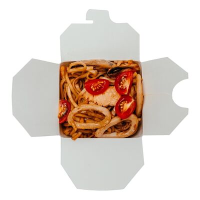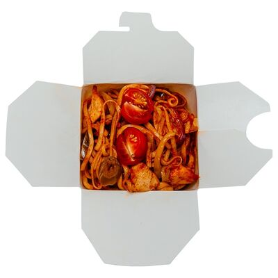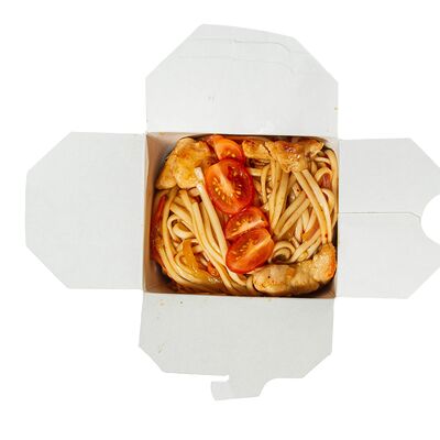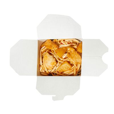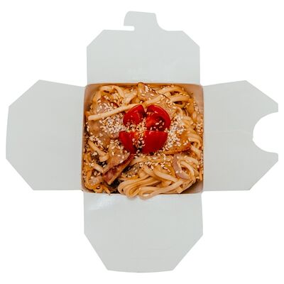 Лапша удон, курица, ананас, чили сладкий, соус соевый