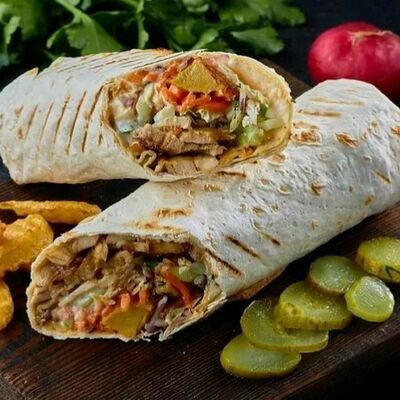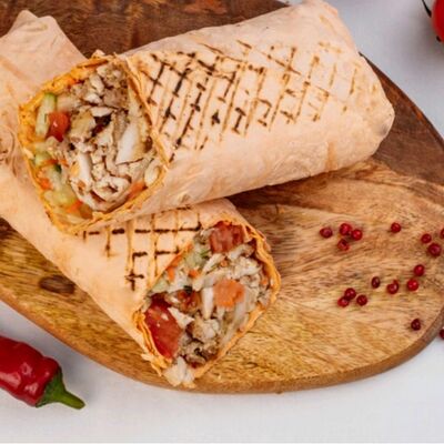 Лаваш, мясо куриное, помидор, огурцы, пекинская капуста, соус