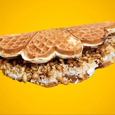 Запеченное яблоко с корицей, соленая карамель, сыр Маскарпоне, сахарная пудра. Размер на выбор