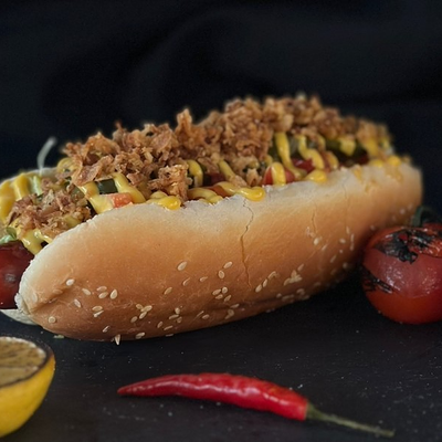 Френч-дог с говяжьей колбаской и фирменным соусом доставка