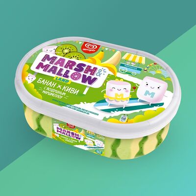 Пломбир с воздушным маршмеллоу под соусом киви, с любимыми детскими вкусами бананом и киви