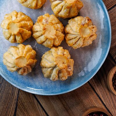 Жареные хинкали с сыром сулугуни и шпинатом доставка