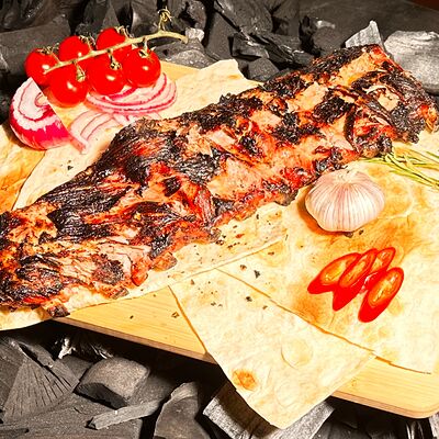 Вкусные свиные рёбрышки качественной прожарки на древесных углях