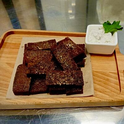 Бородинский хлеб, чеснок, масло растительное, чесночный соус