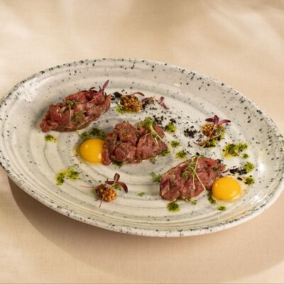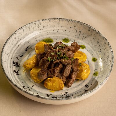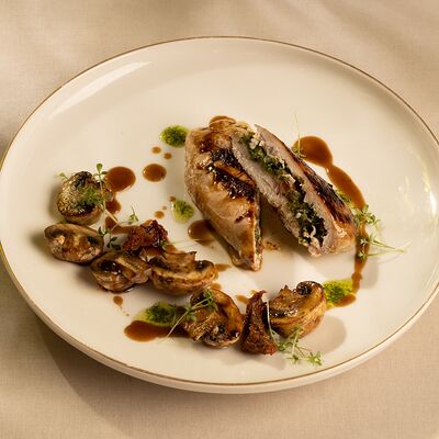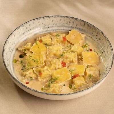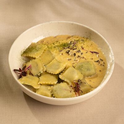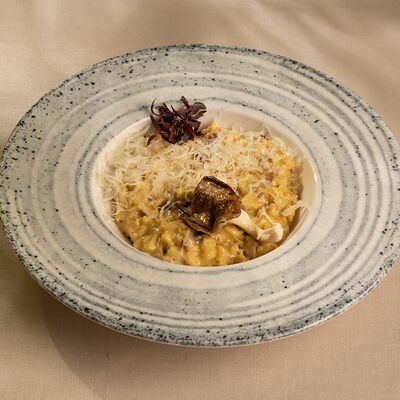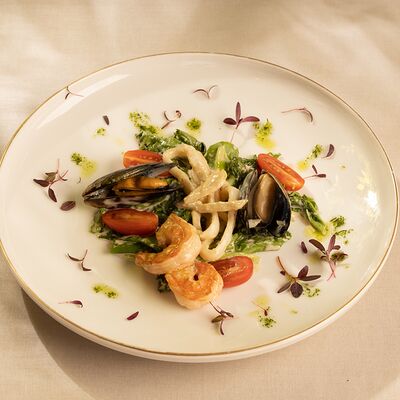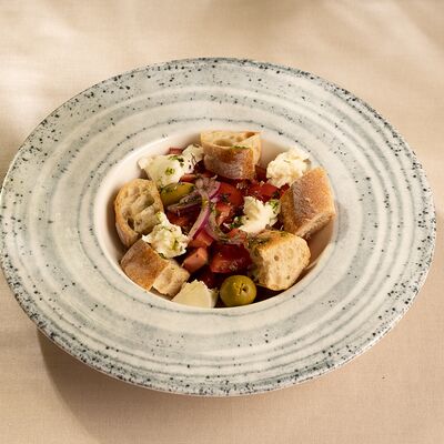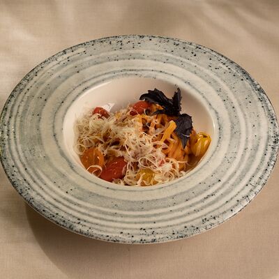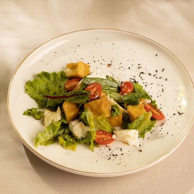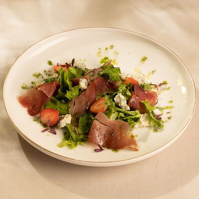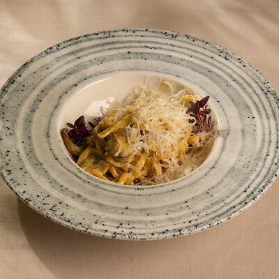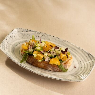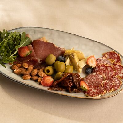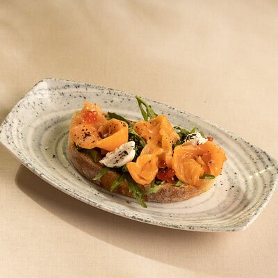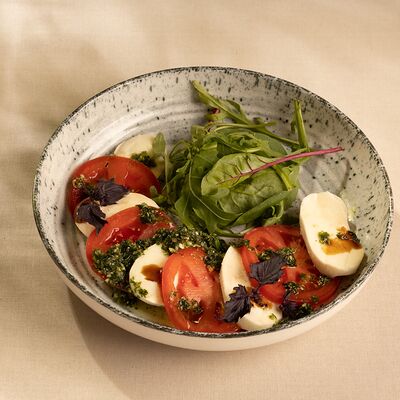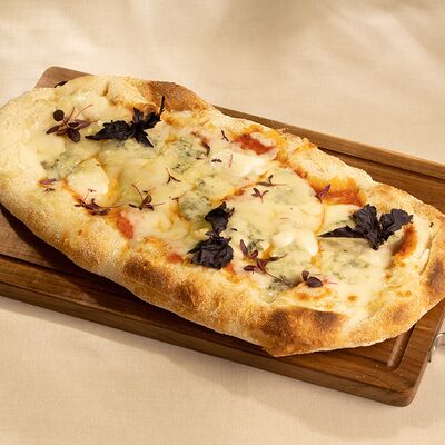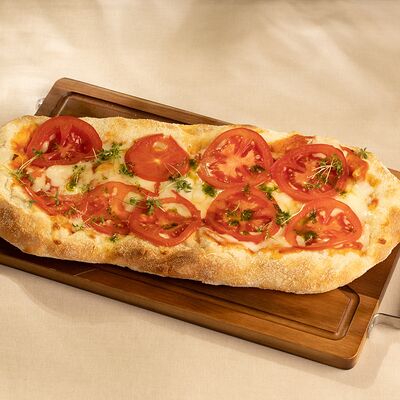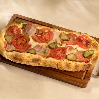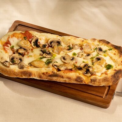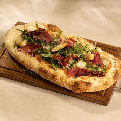 Тесто, артишоки, моцарелла, прошутто, рукола, томатно-базиликовый соус (25 см)
